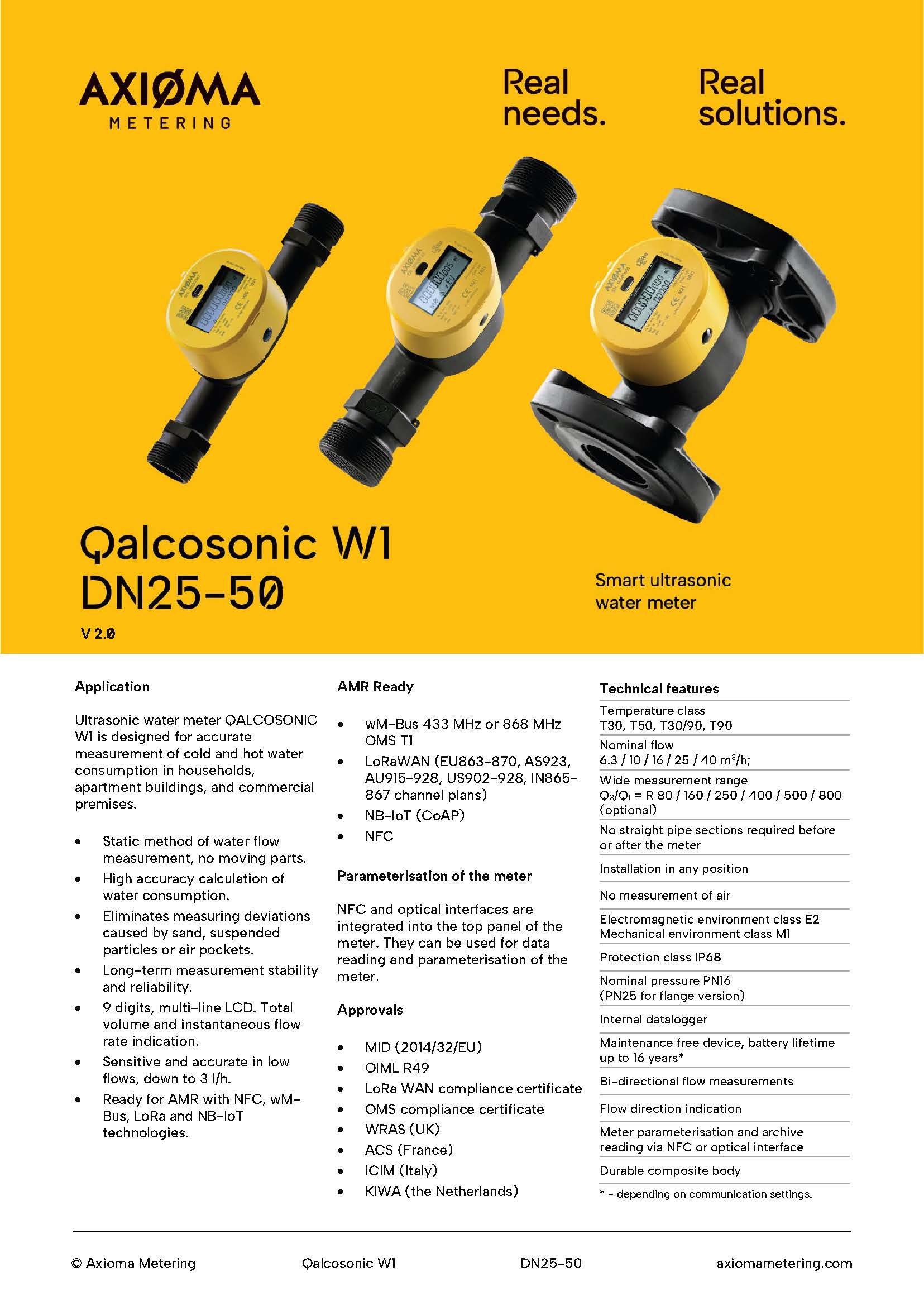 Ultrasonic water meter QALCOSONIC W1 is designed to accurately measure cold water consumption in households, apartment buildings, and small commercial premises.